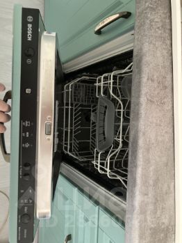 Кухня полностью укомплектована бытовой техникой: холодильником, микроволновой печью, варочной панелью, духовым шкафом, посудомоечной и стиральной машиной, вытяжкой, чайником, комплектом посуды и столовых приборов.