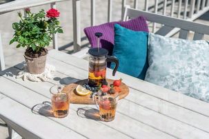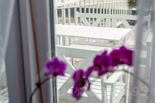 Это двухуровневая квартира-студия, общей площадью 28 кв.м. (площадь по полу 19 кв. м. + 9 кв.м. второй уровень) со своей собственной террасой. Наличие собственной обустроенной террасы сделает ваш отдых незабываемым. Лестница на второй этаж при необходимости убирается.