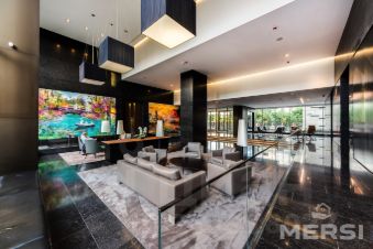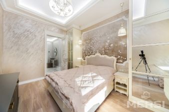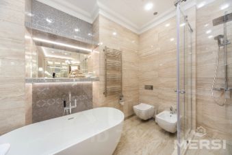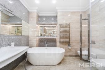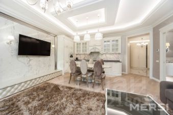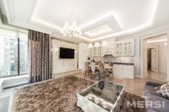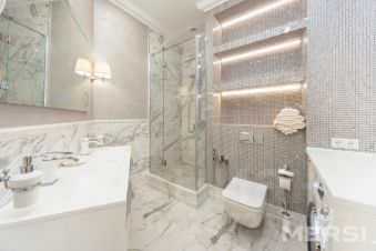 СВЕТЛАЯ, просторная квартира после качественного ДИЗАЙНЕРСКОГО РЕМОНТА в современном стиле с использованием дорогостоящих материалов. Функциональная планировка - СТУДИО: Кухня + гостиная, основная спальня со своим санузлом, гостевая спальня. Квартира полностью меблирована и оснащена необходимой бытовой техникой от ведущих производителей. Система кондиционирования. Два полноценных элегантных санузла - ванна, душевая кабина. Развитая инфраструктура. Рядом парк Красная Пресня.