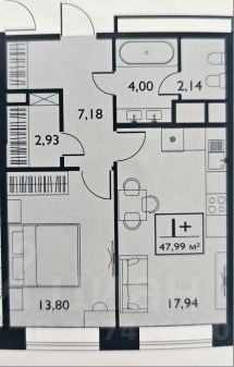 Планировка: кухня-гостиная, изолированная спальня, просторный санузел с душевой кабиной, гардеробная комната, широкий холл.
