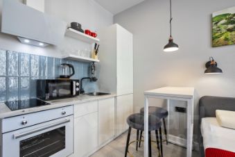 * Микроволновая печь, плита, холодильник, чайник, набор посуды