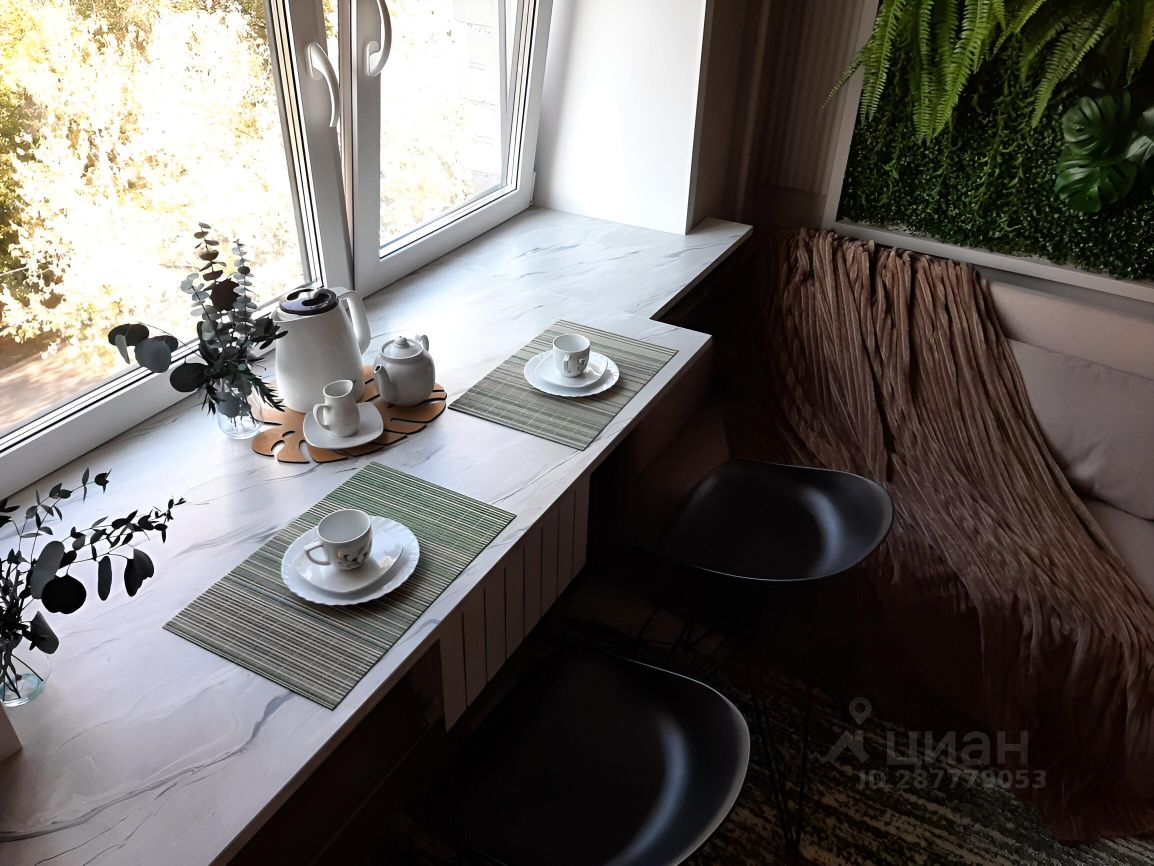 Удобные полубарные стулья, просторная зона для работы и приема пищи.