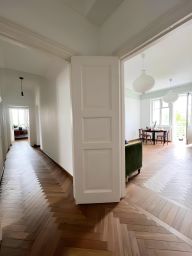 Добро пожаловать поклонникам советского конструктивизма. Вашему вниманию предлагается 5-ти комнатная квартира, в доме Наркомвода на берегу Канала имени Москвы, в 15-ти минутах ходьбы от м. Сходненская, за домом сквер, рядом Парк Покровское-Стрешнево, развитая инфраструктура. Квартира сдается на длительный срок. Ремонт делали для себя под надзором дизайнера целый год. Окна, двери, батареи бережно отреставрированы, новый дубовый паркет. Высота потолков 3,20 м, что значительно увеличивает пространство. Очень светлая и уютная квартира, комнаты расположены по кругу, солнце движется по ним от рассвета до заката. Четыре изолированные комнаты, одна проходная, два балкона, из гостиной и комнаты, 13 окон, отдельная гардеробная комната с окном, ванная комната также с окном. Посудомоечная, стиральная и сушильная машины в наличии. Ждем, приходите.