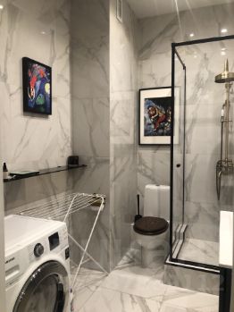 Из техники: Есть стиральная машинка с сушкой, посудомойка, духовка.