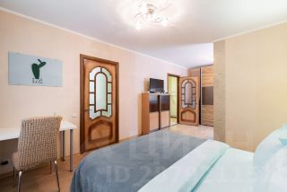 Квартира состоит из большой уютной комнаты с красивым декором. Комната разделена на две зоны, в одной находится двуспальная кровать, в другой раскладывающийся диван. Отдельной компактной симпатичной кухни. Санузла с душевой кабиной. Вход в квартиру из подъезда из отдельного тамбура со своей дверью на 4 квартиры.