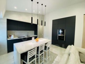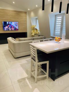 Планировка квартиры включает светлую кухню - гостиную, спальню , один совмещённый санузел . Кухонная зона оснащена стильным гарнитуром с островом и встроенной техникой, в том числе посудомоечной машиной, имеется стиральной машина с сушкой . Вся техника в квартире компании Neff. Имеются несколько вместительных шкафов, раскладной диван , телевизор ( 55 диагональ) , ортопедический матрас . Квартира оснащена сигнализацией Гольфстрим. Дом находится на 2 линии домов, из за этого не шумно.