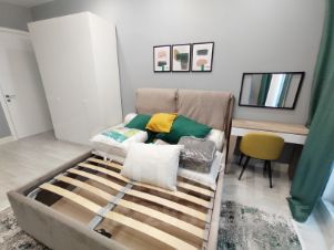 - Есть вся необходимая мебель и бытовая техника, включая кондиционер, холодильник, плиту, духовой шкаф, вытяжку , посудомоечную машину, стиральную машину с сушкой, телевизор;