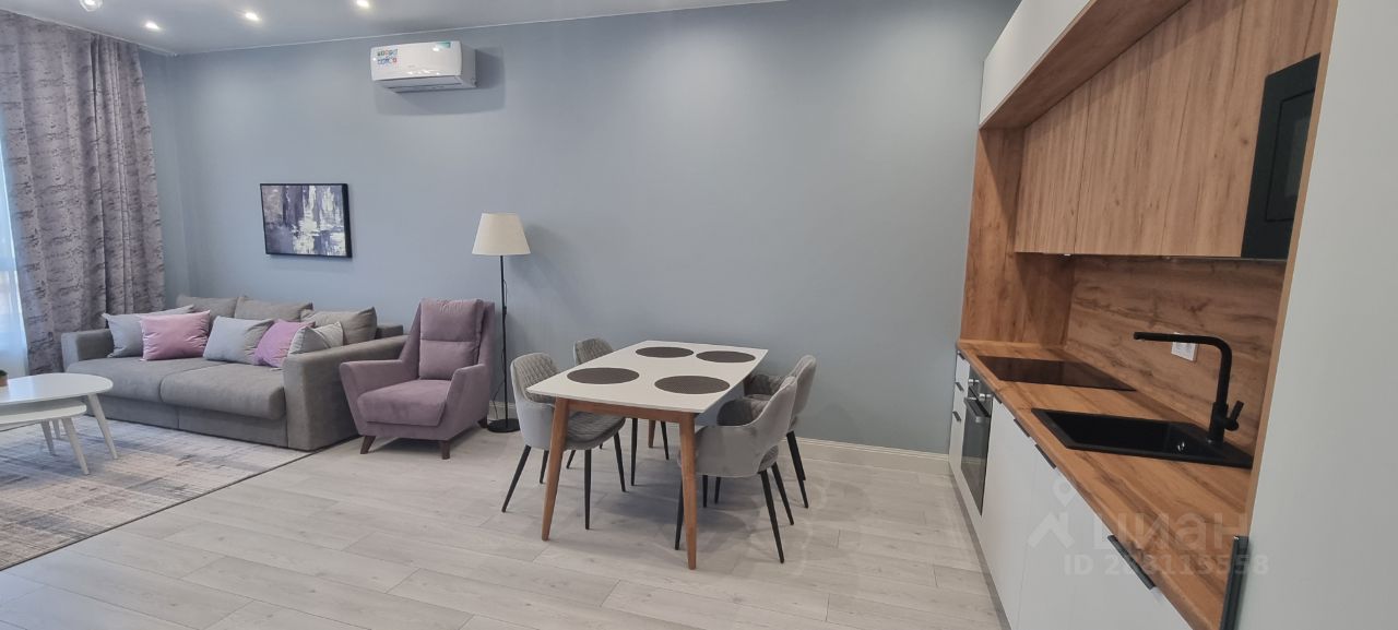 ЖК " Level Донской (Левел Донской)" 3-комнатная квартира с дизайнерским ремонтом и мебелью. 2 спальни, 2 санузла, кухня-гостиная.