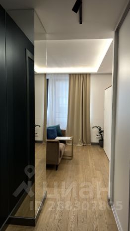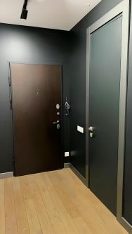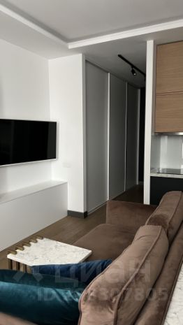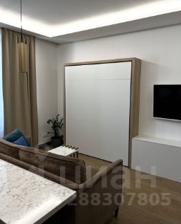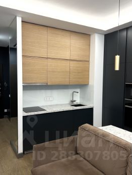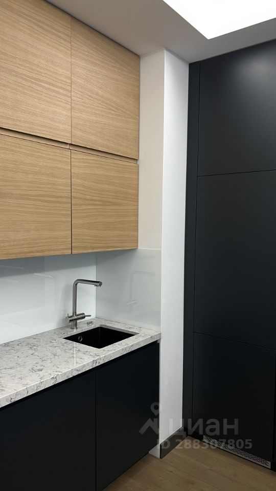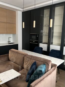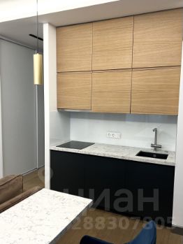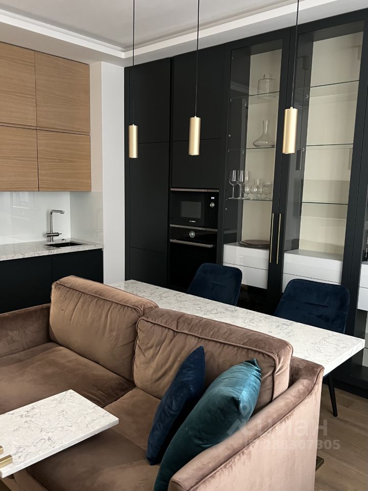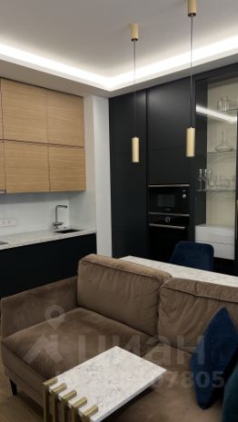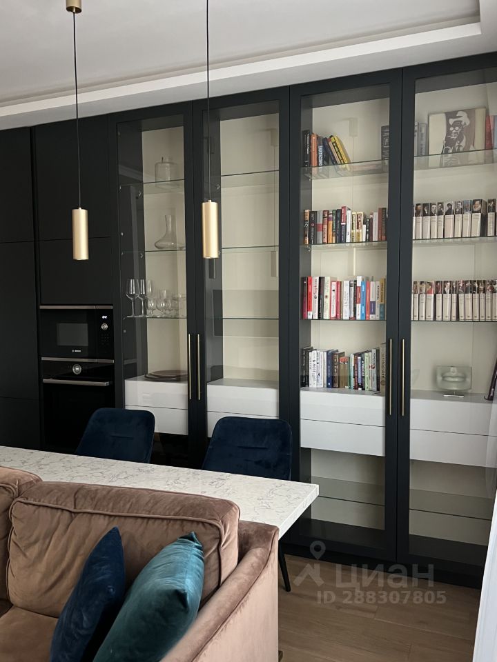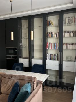 Современный дизайнерский ремонт. Планировка совмещает в себе полноценную кухню, библиотеку с винным шкафом, спальню (кровать опускается от стены), просторный гардероб, большая ванная комната с душевой кабиной. Укомплектована всей бытовой техникой: плита, духовка, свч, холодильник, чайник, посудомоечная и стиральная машина. На полу паркет, в ванной керамогранит. Несколько сценариев освещения. Вечером можно включить уютную подсветку над барным столом из кварца под мрамор.