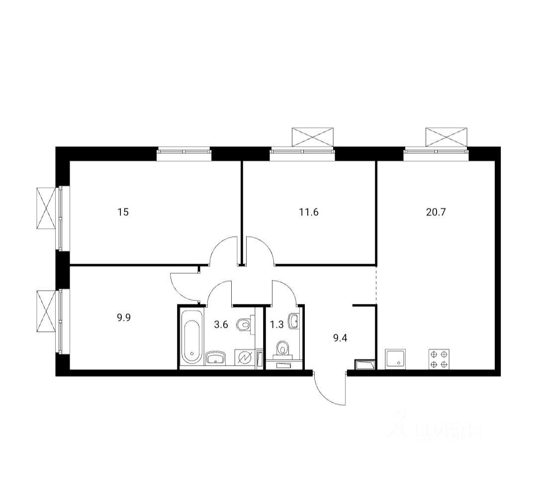 С 15 ноября сдается ТОЛЬКО на длительный срок большая светлая квартира: 3 раздельные комнаты и кухня-гостиная 20,7 кв. м, два санузла.