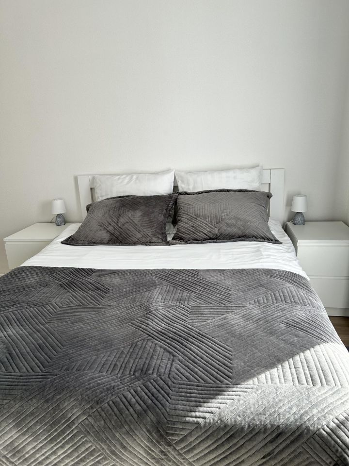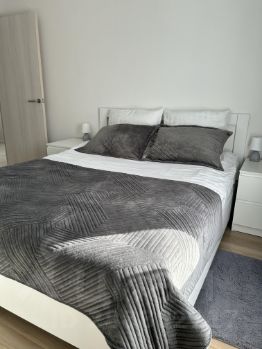 Квартира оборудована всем необходимым для комфортного проживания: двуспальная кровать, удобный ортопедический матрас, двуспальный диван, кухня с набором посуды, набор полотенец, средства для тела и волос).