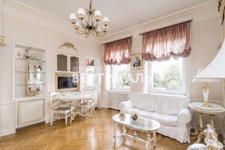 Эксклюзивная квартира с планировкой: кухня-гостиная (open space) и изолированной спальней на Патриарших прудах в историческом доме с приватным двором-садом, расположенном на территории бывшего парка дворца графа Разумовского (знаменитого Английского клуба). Это уникальная локация с атмосферой притяжения власти, бизнеса и бомонда, где в шаговой доступности находятся главные музеи, театры, посольства и лучшие рестораны столицы. Уютное пространство в стиле неоклассики вдохновлено интерьерами столичной аристократии XIX в. Интерьер гармонично сочетает современную и антикварную мебель. Из панорамных окон открывается прекрасный вид на юго-запад столицы.