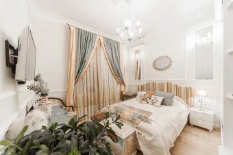 Отдельная спальня с тв и шкафом купе, просторная гостиная с раскладным диваном и мраморным электро камином, прелестная кухня, оснащена всей необходимой техникой и посудой. Просторная ванная комната с ванной и душем, со всеми туалетными принадлежностями, феном и полотенцами.