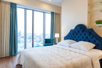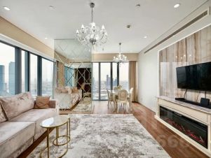 Угловой апартамент с камином в башне "ОКО" Москва-Сити! Включает просторную гостиную с кухней-баром, холл, гостевой санузел, 1 спальню, основной санузел с панорамной ванной. С окна открывается замечательный вид на башни Москва-Сити с одного угла и на город — с другого угла!