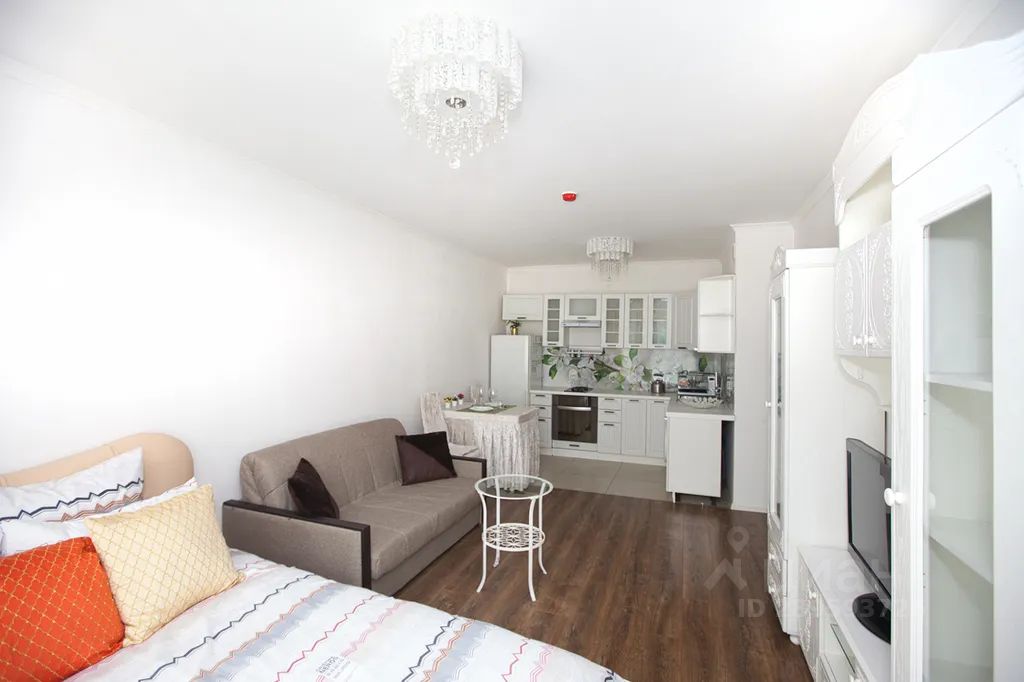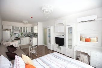 Студия идеально подходит для проживания от 1 до 4х человек. В комнате размещена двуспальная кровать 160*200 с ортопедическим матрасом и удобный раскладывающийся диван.