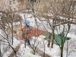 -Вид на Пушкинскую площадь и тихий закрытый двор с детской площадкой.