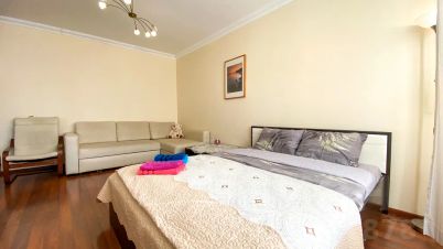 2х спальная кровать, диван-кровать, кухонный гарнитур.