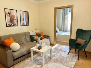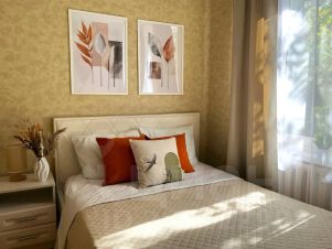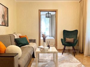 Двухкомнатная квартира рядом с м. "Молодежная". Комфортное размещение до 4 гостей: пространство комнаты функционально разделено на спальню с большой кроватью и гостиную с раскладным диваном — удобный формат для семьи, коллег или друзей.