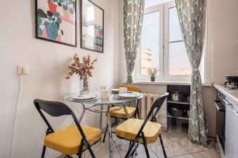 Квартира имеет все необходимое для отдыха или делового визита, отлично подойдет для комфортного проживания пары или семьи с ребенком.