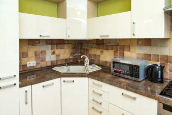 В комнате: Новая двуспальная кровать, уютный двуспальный диван, телевизор, ДВД, стенка и кресло. Выделенная линия интернет. Размещение до 4-х человек (2 + 2). В кухне: Гарнитур, стол, стулья, холодильник, эл. чайник, СВЧ, вся необходимая посуда, стиральная машина-автомат, утюг, гладильная доска.