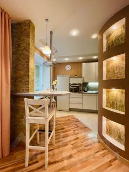- Кухня со всей необходимой посудой и техникой: холодильник, микроволновка-духовка, посудомоечная машина, чайник