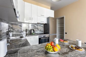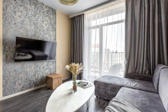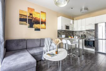 Евродвушка 42 м2: отдельная спальня с большой кроватью, гостиная-столовая, в гостиной раскладной диван, ванная с душевой, биде и подогреваемым полом. Охрана 24 часа, пожарная сигнализация. Лифты Kone. Полный комплект техники и расходных материалов: холодильник, стиральная машина, посудомоечная машина, плита, духовка, микроволновка, кофе-аппарат, чайник, тостер, два телевизора, сейф, утюг, фен, гладильная доска, сушка, Wi-Fi, оплата: наличный/безналичный расчет, отчетные документы. Парковка бесплатная в 100 метрах от дома!