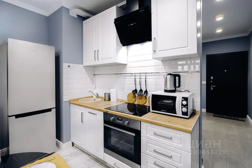 Плита, посудомойка с капсулами, духовка, микроволновка, чайник, холодильник;