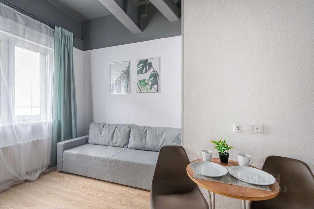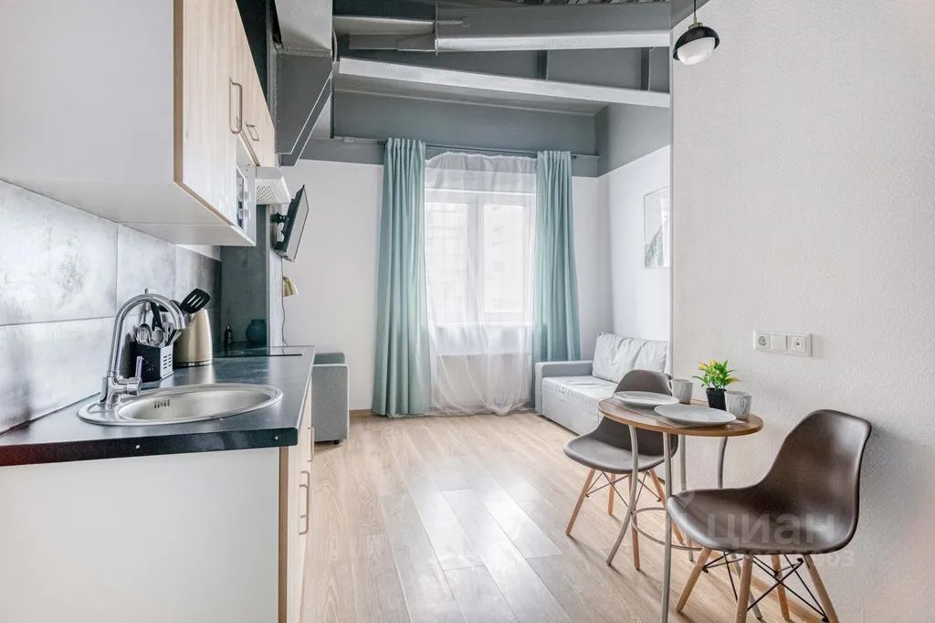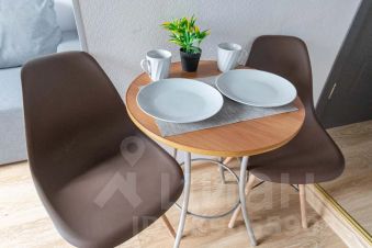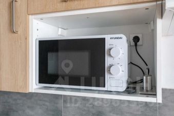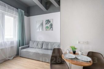 Апартаменты - студия в ЖК Парк Легенд. Несмотря на небольшую площадь, квартира с раздельными спальными местами. Большой двуспальный диван и односпальное кресло, которое также раскладывается. Есть обеденная зона, телевизор, кухня со всей бытовой техникой и стиральная машина.