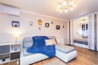 Ремонт новый — дизайнерский, в 100 м от м. Проспект Мира. По-домашнему уютная квартира с оригинальным эксклюзивным дизайном (hand made) в светлых тонах возле метро Проспект Мира (100 м). Новый ремонт. Мы сделали ее своими руками, чтобы вы себя почувствовали как дома. Квартира имеет большую комнату, разделенную на гостиную и спальную зону, два балкона, на одном из которых можно отдохнуть и насладиться московским закатом. А также большая кухня в ярких тонах со всем необходимым комплектом посуды.