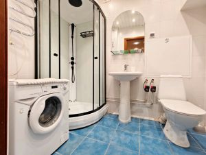 Посуточная аренда квартиры включает следующие удобства: Современная мебель, двуспальная кровать, бытовая техника, скоростной WI-FI, спутниковое TV, гладильная доска, сушка, оборудованная кухня, полный комплект посуды для приготовления и приёма еды, мыло, тапочки и фен