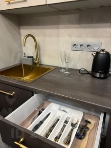 > Дизайнерская кухня из дорогих материалов и фурнитуры по системе CleanTouth (не оставляет пятен).