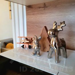 Кухонный уголок оборудован микроволновкой, мультиваркой, электропечкой Moulinex, индукционной одноконфорочной плитой, кастрюлей, сковородкой, электрочайником и кофеваркой Smeg, тостером Tefal и вафельницей, блендером Tefal, мини-холодильником, посудомоечной машинкой, стиральной машинкой с сушкой.