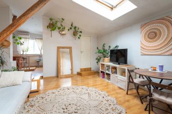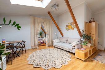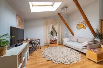 Светлая мансарда на Тверской, стильная, атмосферная, просторная с высокими потолками (5,2 метра) Окна выходят на Тверскую, из окна красивый вид на историческую Москву. По всем при этом в квартире необычайно тихо.