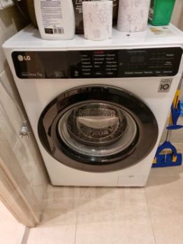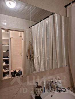 Санузел совмещённый: стиральная машина автомат, зеркало с подстветкой и шкафчиком, полотенцесушитель.