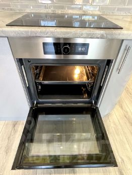 Апартамент оснащен кухней со всей необходимой крупной бытовой техникой (встроенная посудомоечная машина, холодильник, духовка, варочная панель 4 конфорки, вытяжка, чайник, стиральная машина), кондиционер. Набор кухонных и столовых принадлежностей. Утюг, гладильная доска, сушилка, фен.