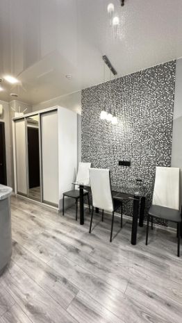 Высокоскоростной безлимитный WI-FI. Мебель, которая позволит разместить всю одежду и вещи. В апартаментах есть вся бытовая техника, новый раскладной диван и новые светлые стулья около стола.