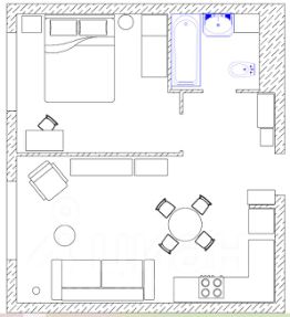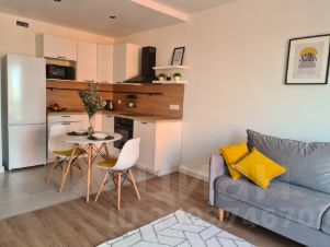 От собственника. Уютная двухкомнатная квартира 41 кв м (кухня-гостиная + отдельная спальня) с мебелировкой по индивидуальному проекту, кондиционером, ТВ и бытовой техникой, посудой и другими нужными для комфортной жизни мелочами (утюг, чайник, гладильная доска).