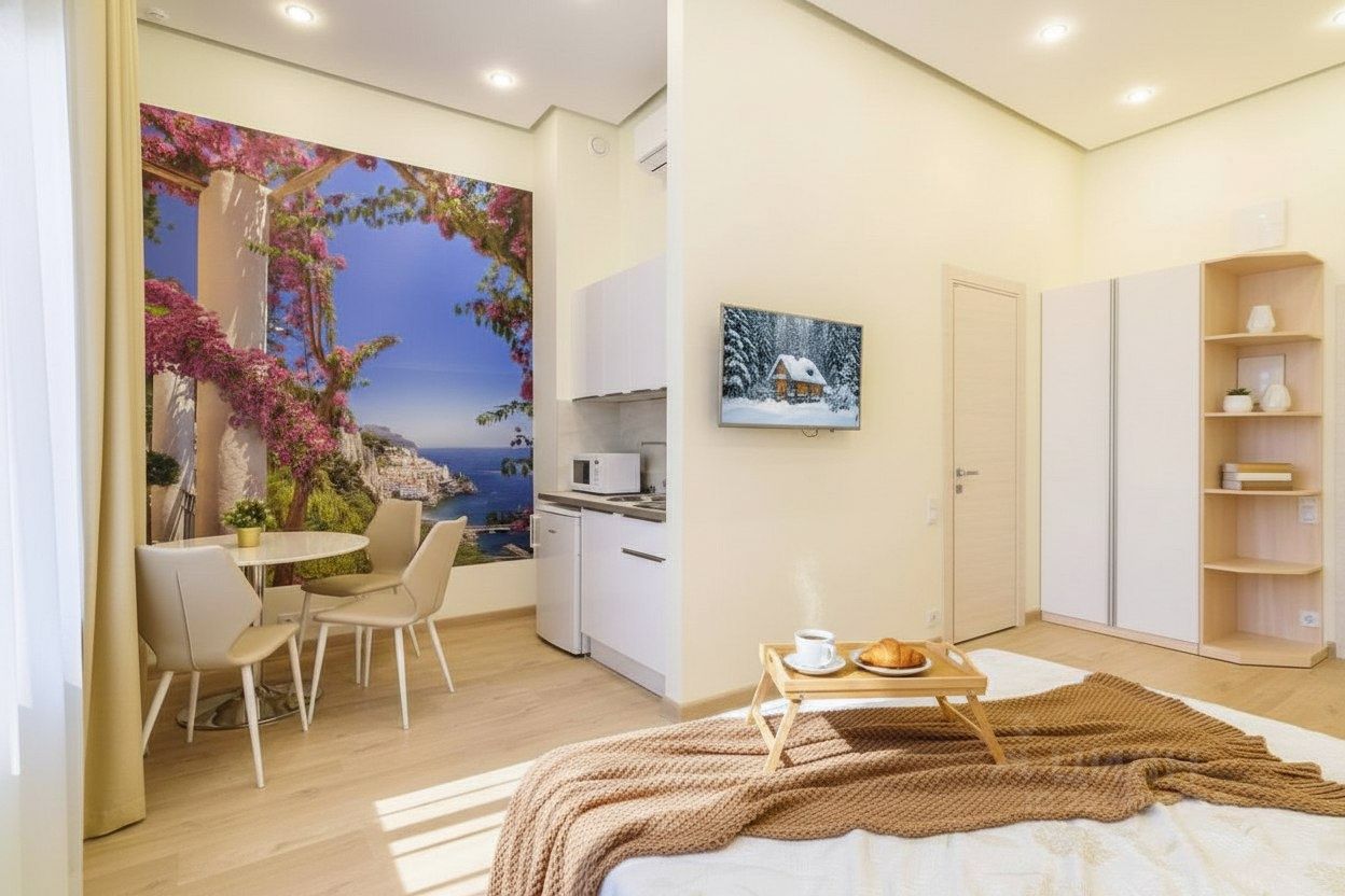 Апартаменты идеально подойдут как для 1 человека, так и для семьи. Они полностью обставлены : большая двухместная и одноместная кровать, мебель, бытовая техника, посуда, полотенца, белье, кондиционер, Wi-Fi, TB, и все необходимое для длительного проживания. На первом этаже магазин.