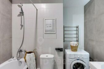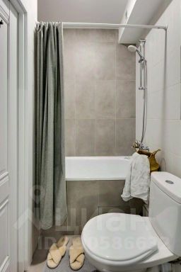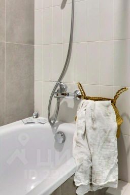 Санузел с ванной и полотенцесушителем.