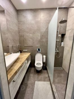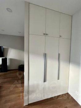 В коридоре большой гардеробный шкаф. В спальной зоне диван, раскладывается в полноценную двуспальную кровать 160*200 с ортопедическим матрасом. Отдельная меблированная гардеробная, большой телевизор, кондиционер. Кухонная зона оснащена посудомойкой, варочной панелью и духовым шкафом, холодильником, стиральной и сушильной машинами.