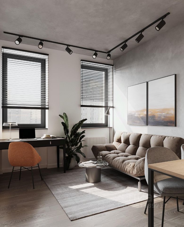 — гостиная с раскладывающимся диваном и рабочим местом