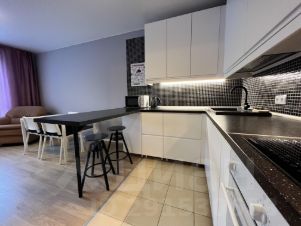 Просторная кухня- гостиная и 2 спальни, 2 санузла. Современная техника. Посудомоечная машина. СВЧ. Предоставляются кухонные принадлежности. Квартира может быть доукомплектована по согласованию с арендатором.
