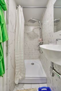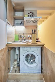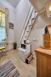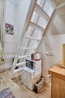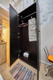 В студии есть все удобства, включая микроволновку, холодильник, индукционную плиту, сушилку для белья, гладильную доску, утюг, столовые приборы + посуду, белье, матрас, сантехника Geberit и т.д.