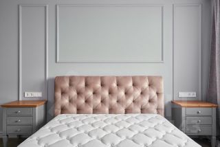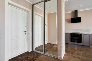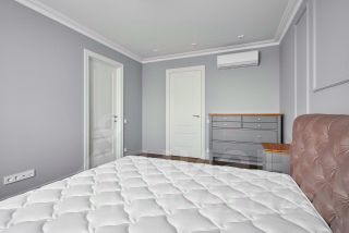 В спальне двухместная кровать. Из спальни можно попасть в большую гардеробну. И прямо из неё в мастер-санузел с ванной.