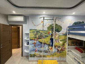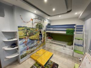 -детская комната с двухэтажной кроватью, игровой зоной и вместительным шкафом;
