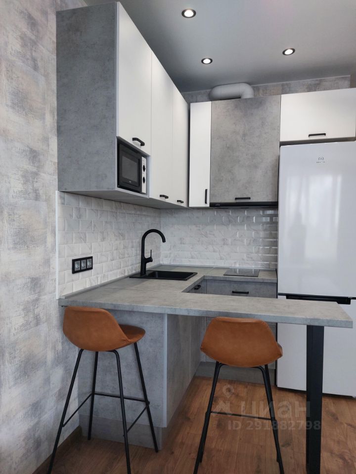 Оборудованная техникой кухня.