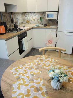 Атмосферная квартира в прекрасном состоянии, имеет всё необходимое для комфортного проживания: Гардеробная комната, вместительные шкафы в комнате, кухне и ванной, холодильник, пылесос, 2-а смарт ТВ, стиральная машина, дополнительный раскладной диванчик на кухне, сушилка для белья на балконе и там же табуретки для гостей, много разнообразных источников освещения.