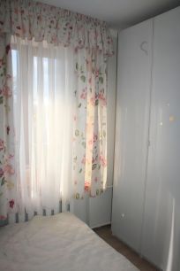 Во всей квартире шторы из испанских тканей, на кухне из негорючей ткани.