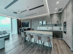 Апартаменты с дизайнерским ремонтом, полностью укомплектованы всей необходимой мебелью и техникой. Оснащены системой умный дом, в каждом комнате установлены планшеты для управления, так же возможно управление с телефона. Всё делалось для себя, на полу дорогой паркет ручной работы, установлена система от протечек, немецкие трубы, итальянские люстры, немецкая кухня, высокие двери под заказ, дверной замок с отпечатком пальца/ открытие по коду/ по ключу, ремонту менее года. В гардеробной есть большой вмонтированный в бетон жаростойкий сейф.