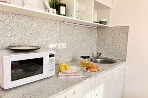 Бытовая техника (Холодильник с морозильной камерой, стиральная машина, микроволновка, электрическая плита, электрочайник); Вы сможете приготовить себе завтрак, обед и ужин